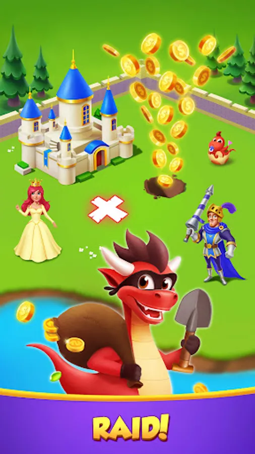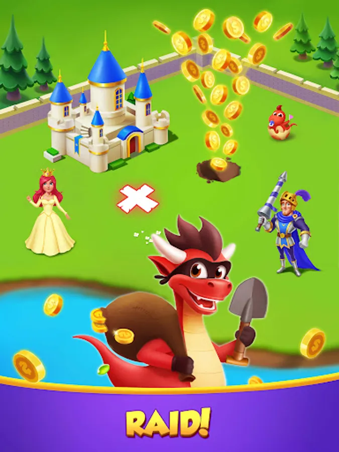 Spin to earn tons of coins, and build your own dragon city. Discover new villages, cities, islands and vale to compete with friends, and become the royal coin master! Use shields to block attacks and protect your city and vale.