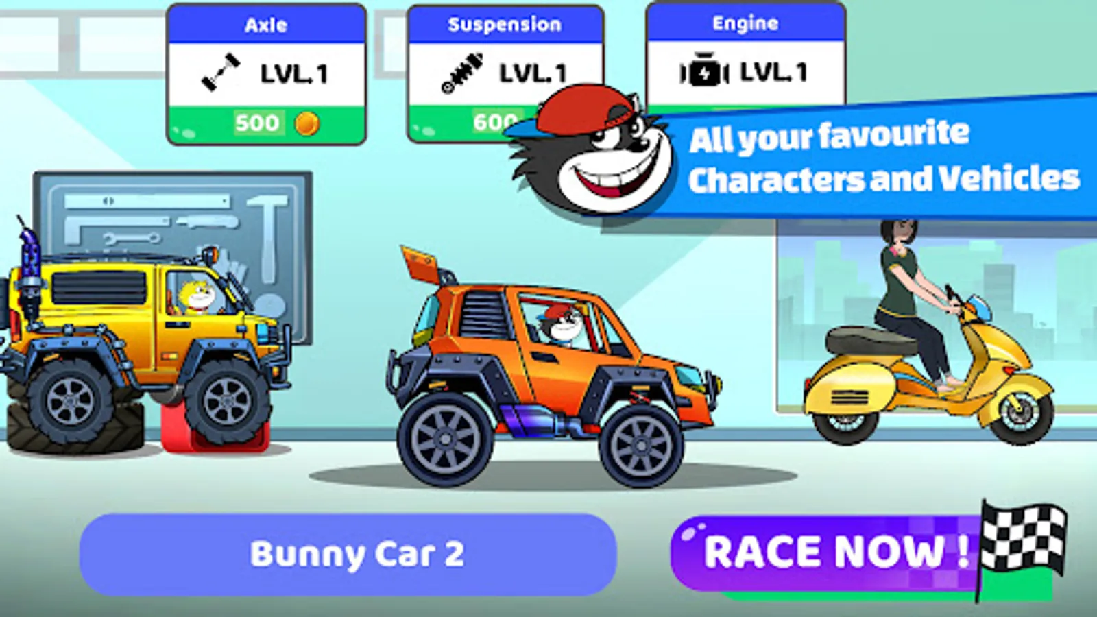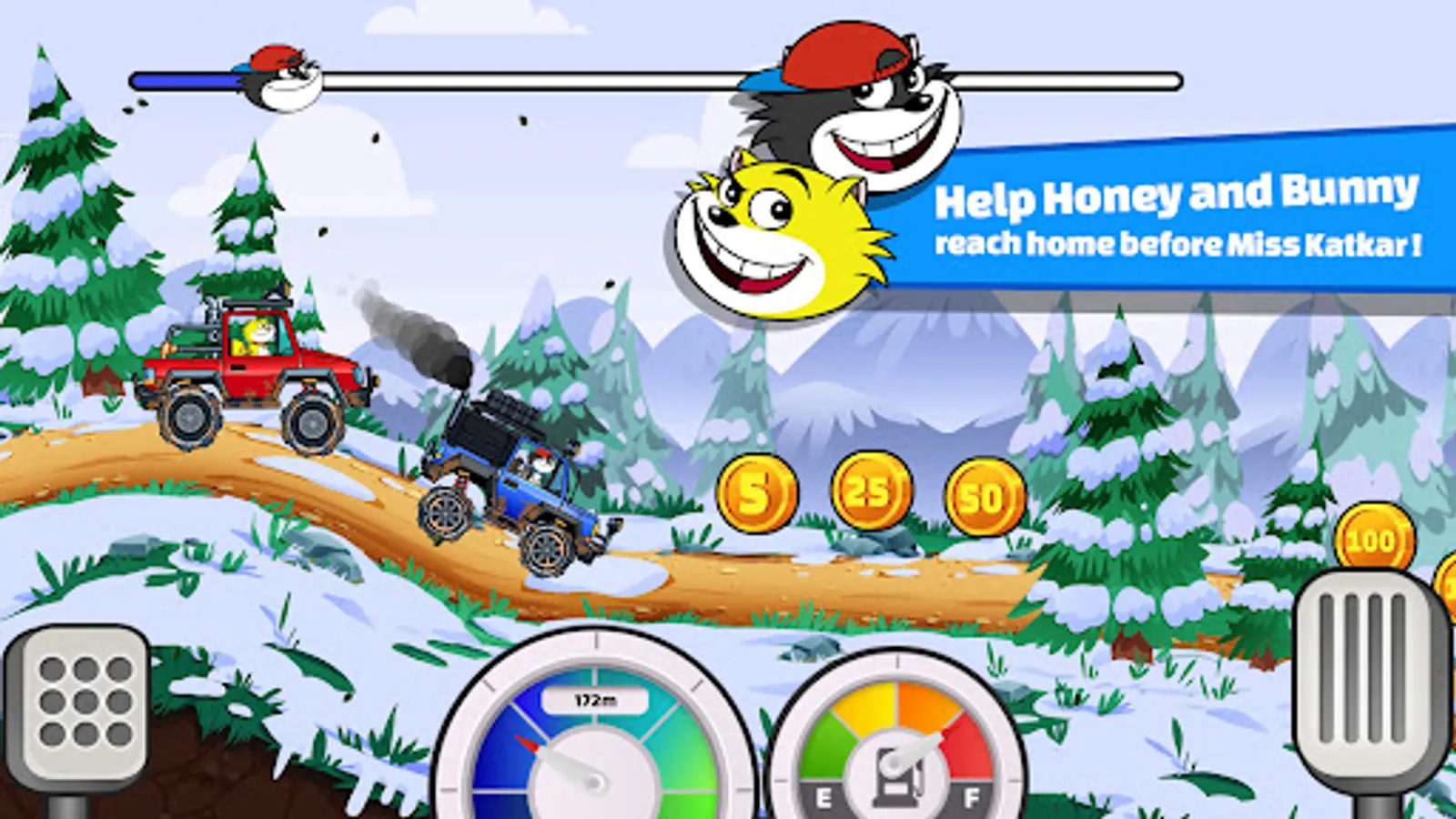 Avoid obstacles to collecting all the coins and gas cans in the level. Tap & Jump through all obstacles and gently put your honey or bunny hero on the finish line. Start racing and never stop! How far can you race?! The most intense, fun ride that you can squeeze into your phone! Meet Honey Bunny, the aspiring uphill racer. In this Honey Bunny ka jholmaal game honey bunny has to face the challenges of unique hill climbing environments with many different cars. Gain bonuses from daring tricks and collect coins to upgrade your car and reach even higher distances. Watch out though don’t let the opposite team win. And his good old gasoline crematorium will easily run out of fuel.