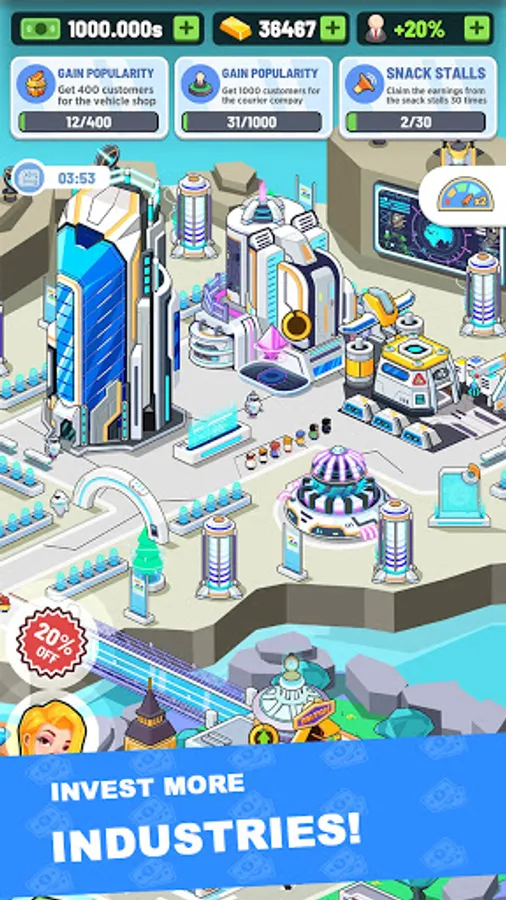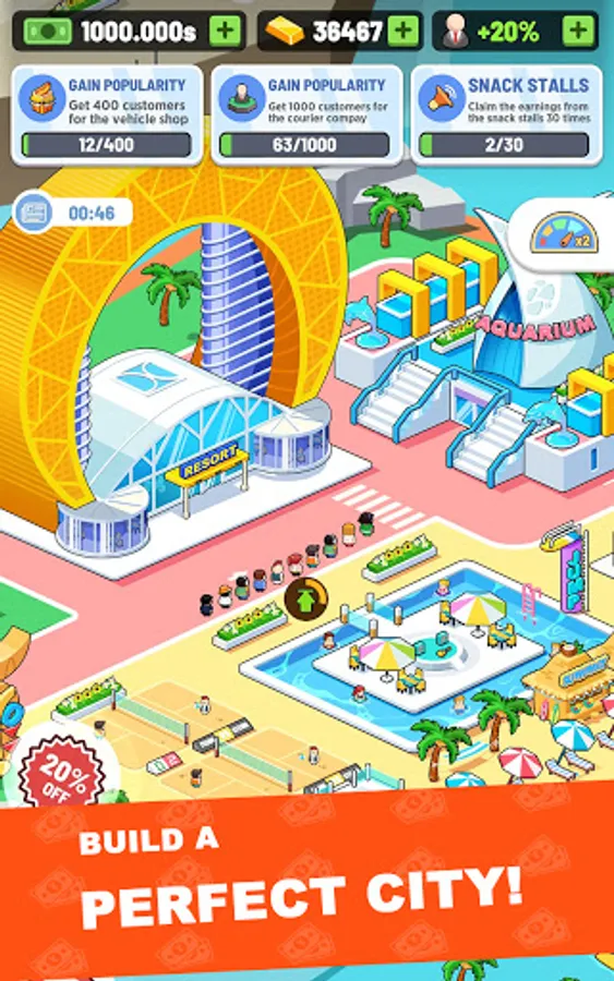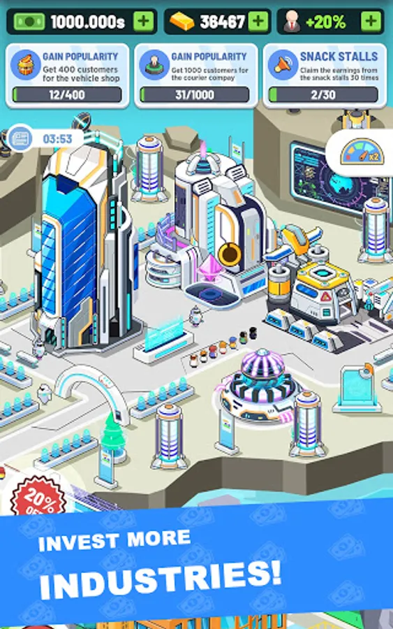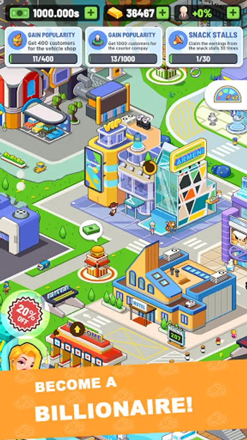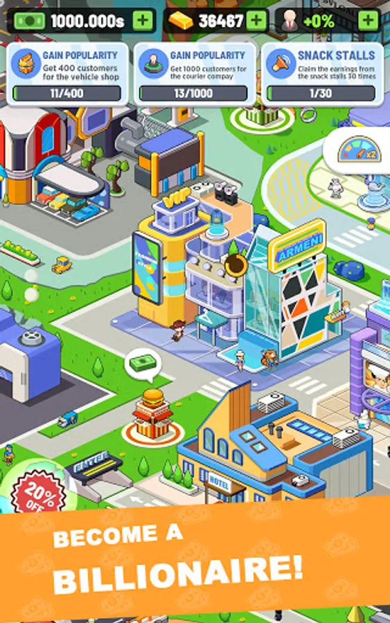 You play as an urban investor in the game. As an urban investor, you can run a high-end hotel, manage a commercial center, open a popular bar, build an amusement park, organize a profitable international cinema, and more urban commercial buildings. Just use your wisdom.