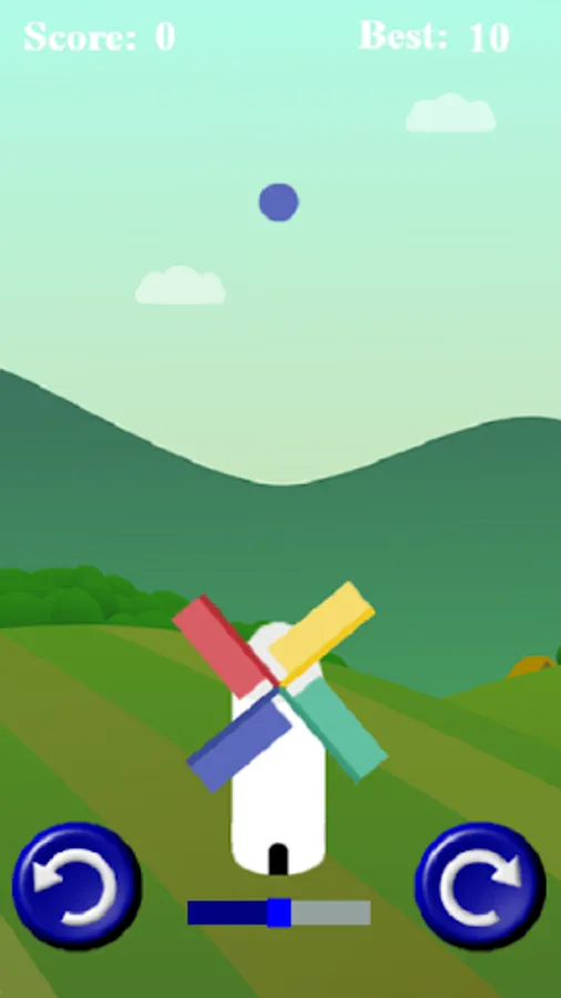 The aim of the game is to rotate the blades of a windmill to catch a matching color ball
