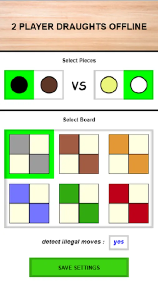 Draughts is also known as checkers and this app lets you carry the game in your pocket and play the game with a friend sitting opposite you. You can even play draught variations by turning the illegal move detector off and set the starting positions how you want using the huff and replenish buttons.