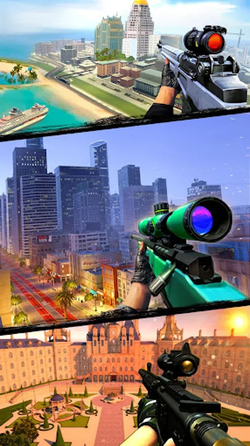 - Ultra realistic 3D graphics and real battlefield view in sniper shooting games.