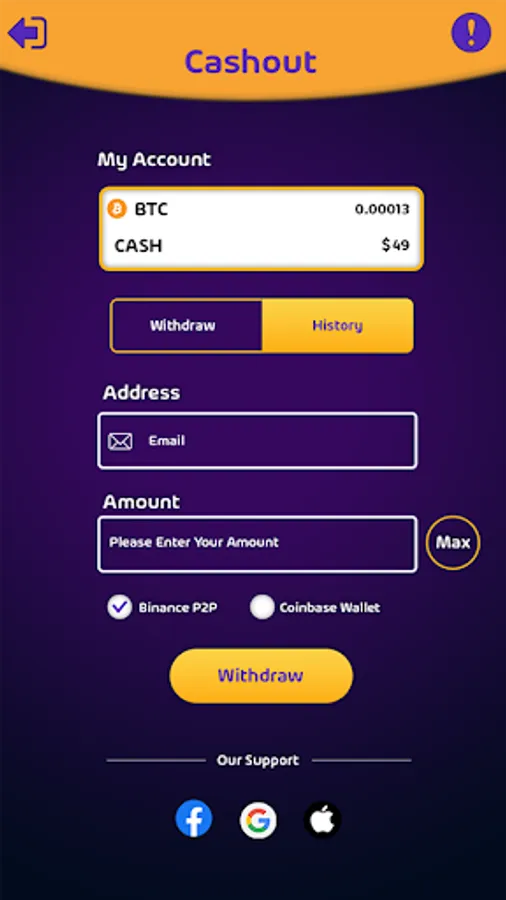 You can Easily cashout your bitcoin by playing this bitcoin game. This game has also previous history So that player can check through the previous record.