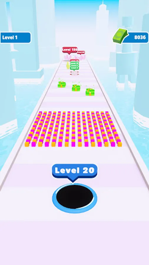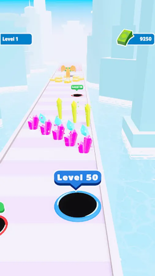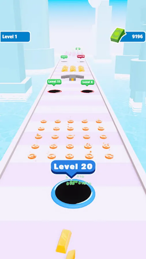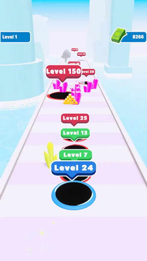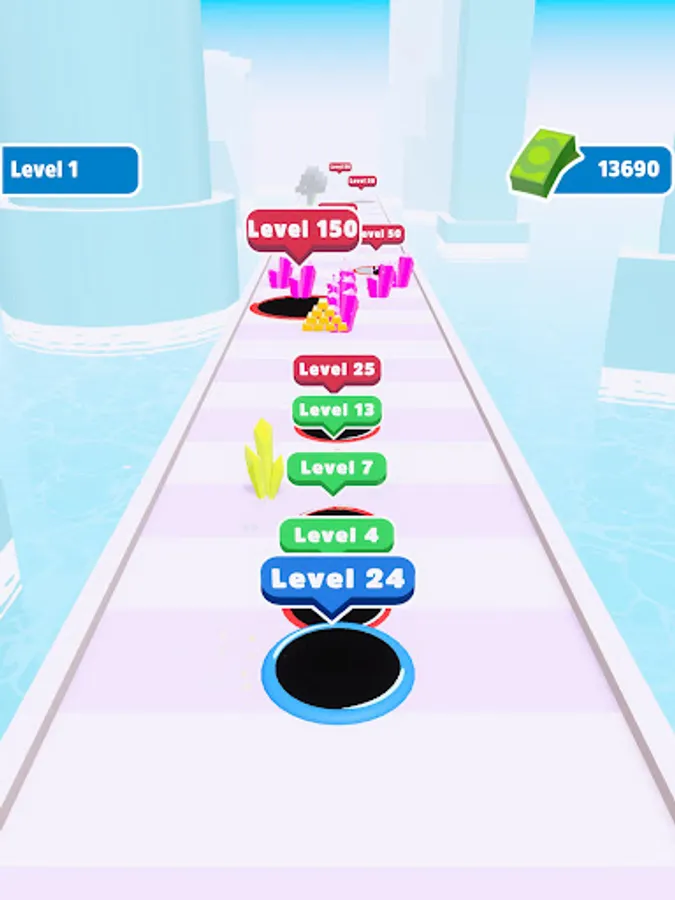 Destroy enemy holes to become bigger, collect everything to earn money and see max level!