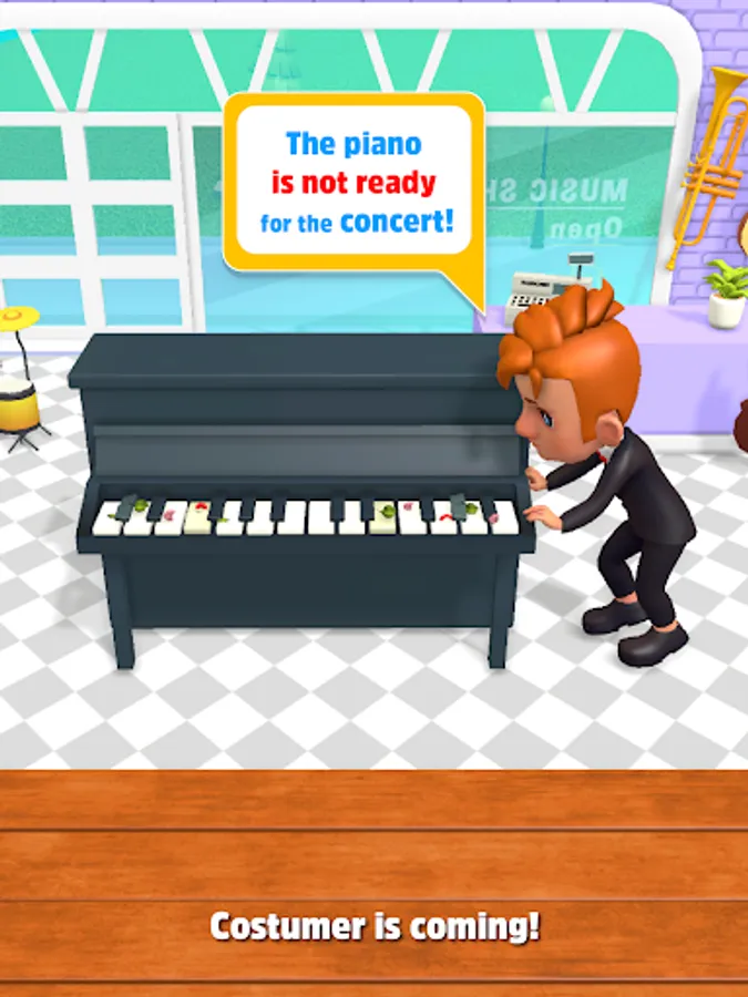 At the beginning of the game, you'll listen to customers' requests and learn about the different parts of each instrument and how to repair or clean them. You'll also learn how to use various tools and materials to get the job done.