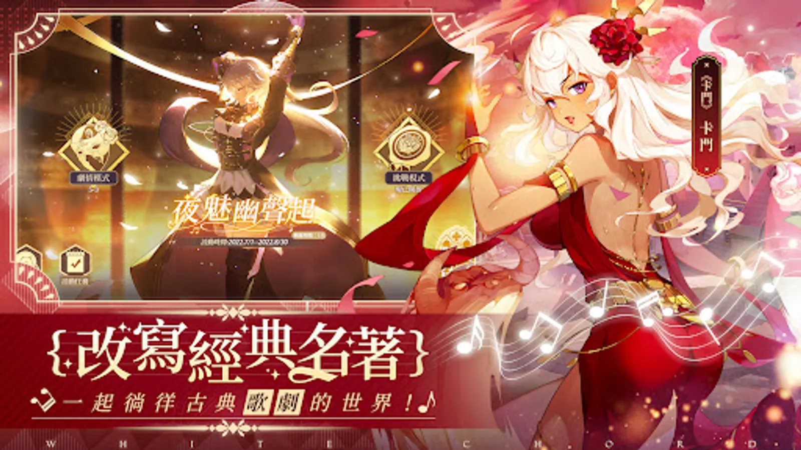 "Pure White Chord" is a card development mobile game in the two-dimensional magic world. It uses the world famous opera works as the background to create a unique and fantastic adventure story.