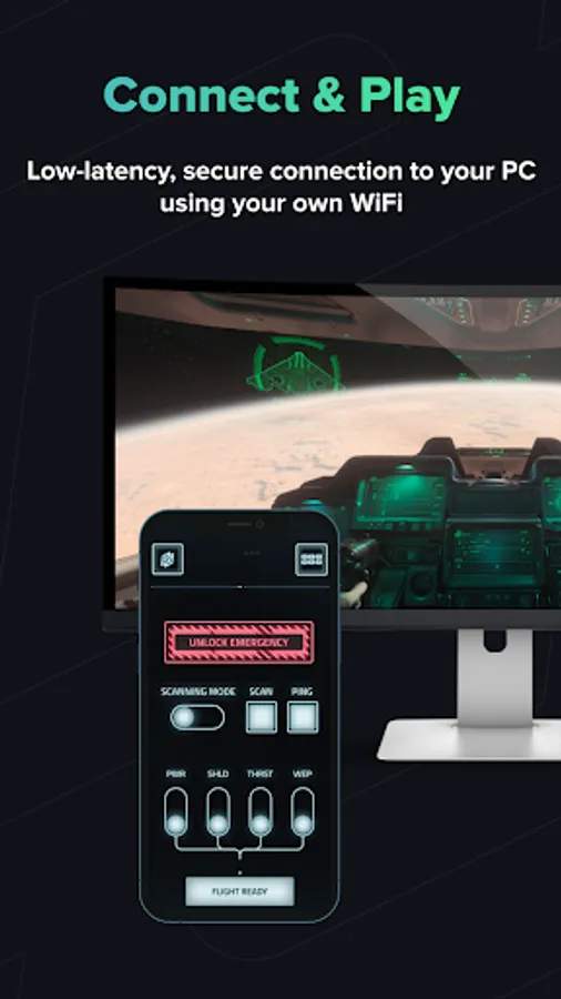 Setup is super easy - simply download Shards or create your own, then connect to the GameGlass desktop app. Commands are sent directly to your game via a secure, ultra low-latency connection using your own WiFi.