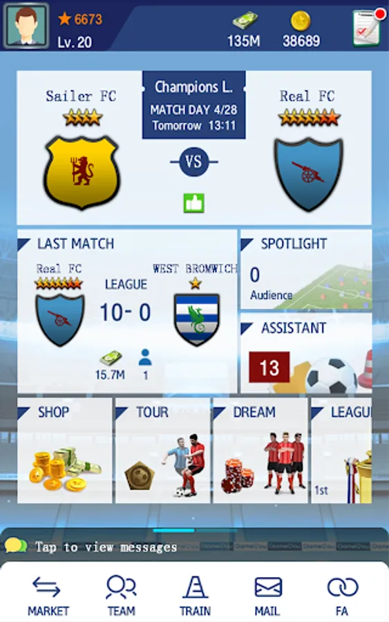 As the head of the club, you will test different formations, adapting your players and tactics to your opponents during matches. Pick promising players and develop them into superstars to score in the ultimate showdown. Build a championship team and climb up the leaderboards.