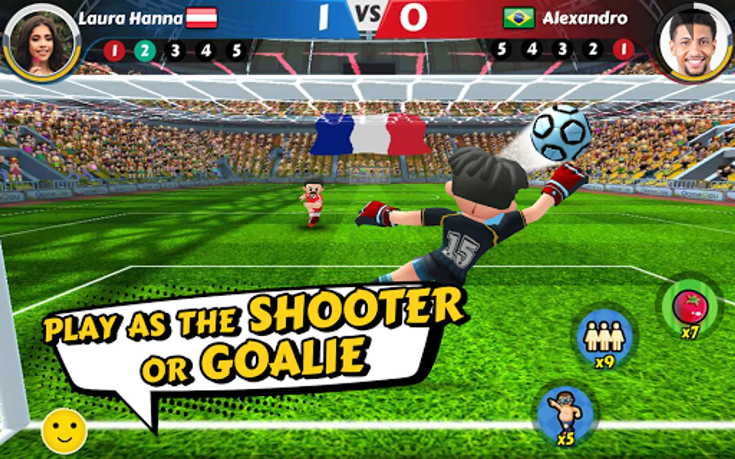 • Simple, fun, and strategic core gameplay, each 1V1 match will alternate between kicker and goalkeeper.