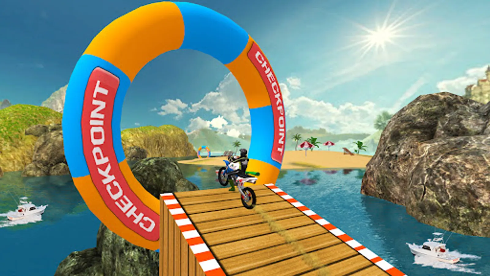 Bike racing with water surfer bike and motorcycle stunts on amazing sea beach area would be amazing idea. Beach water surfer motorbike stunts simulator is unique by its gameplay. This beach water surfer motorcycle stunt racing adventure on city town beach where you ride your motorbike into floating jet ski boats with racing spirit. As a best water surfing driver race your motorcycle in immense sea with fast speed to beat all jet motorbike surfers and win the surfer racing championship around the beautiful sea area.