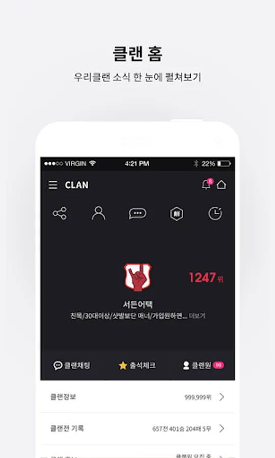 The newly reorganized profile screen is where you can check game information and clan information, as well as network information and social activity information.