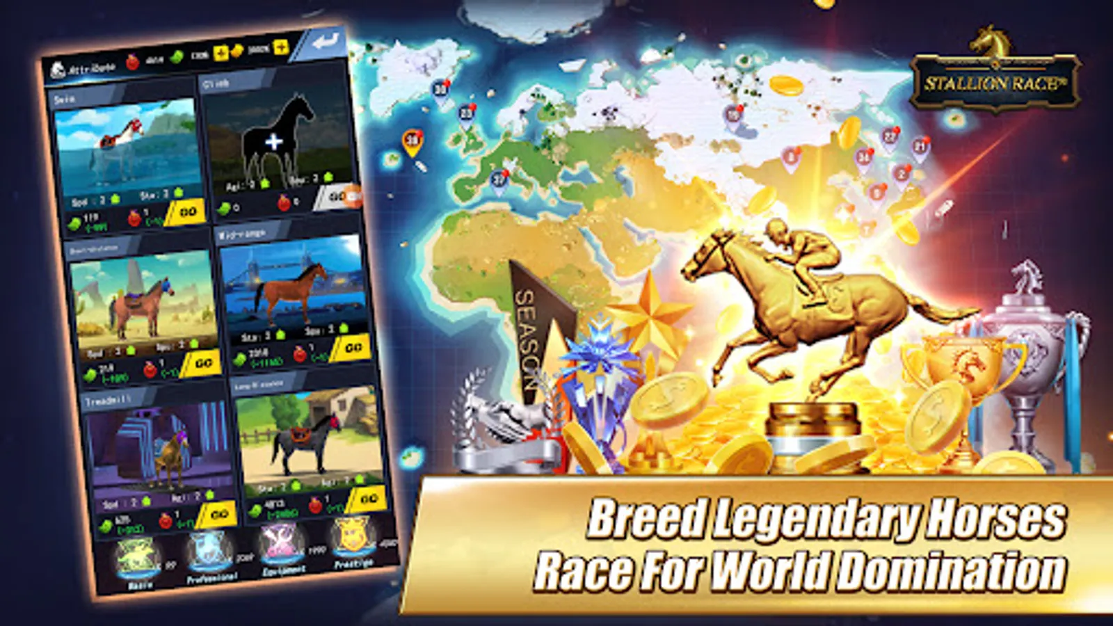 Join the world of worldwide racing and managing sports! Real horses. Real rivals. Real challenges and trophies! Stallion Race is a horse breeding, horse management and horse racing strategy game. Build and manage your stable, recruit and equip your team of jockeys, breed and train your foals to win races.