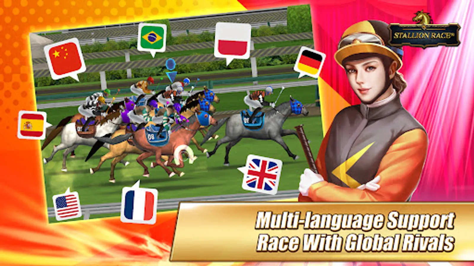Stallion Race supports multi-language for English, Simplified Chinese, Traditional Chinese, Portuguese, Spanish, French and German (more languages will be added in the future). You will be able to meet friends and rivals from all around the world. Drop into any race to challenge them and race to become a star. Get ready to race against players from all over the world!