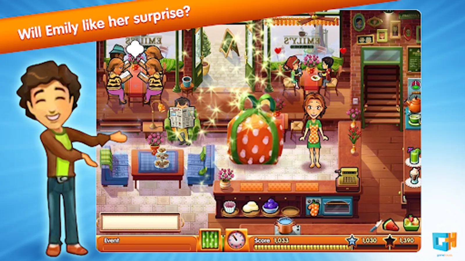 Enjoy this surprisingly cute mini-game from the famous Delicious series! Hilarious chaos ensues in Snuggford as Emily plans a big surprise for Patrick. But Patrick thinks he's on to her and starts to prepare a surprise of his own. Meanwhile Francois is freaking out because he's terrible at keeping secrets. And what’s up with Snuggy the cat?