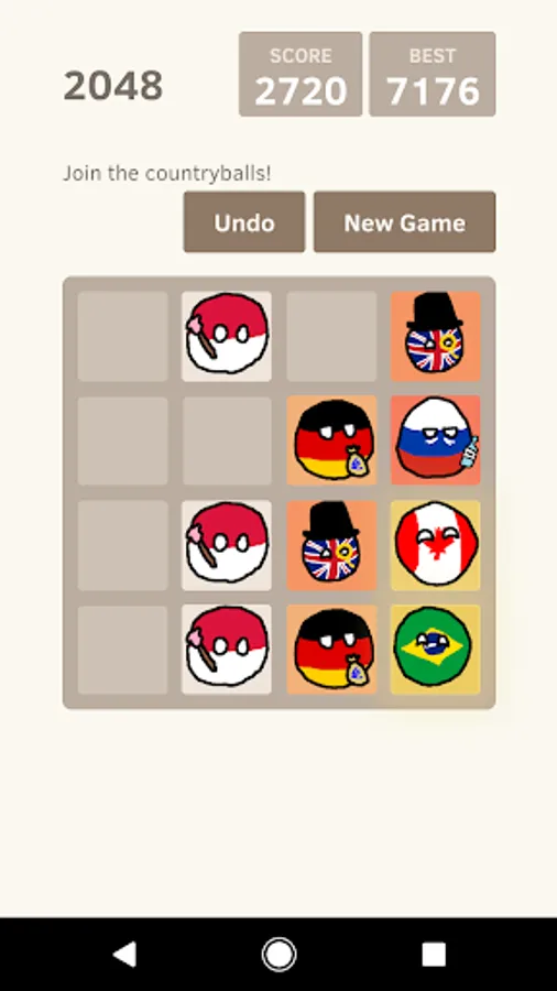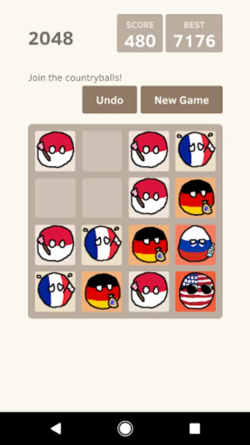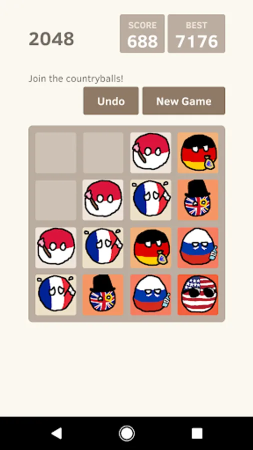 Play the popular game, now with your favourite countryballs from the growing geopolitical satire meme, Polandball. This game is based on the game by Gabriele Cirulli.