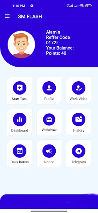 after open this apps you can found state Task, Daily check-in . all oftion is available without any restriction .