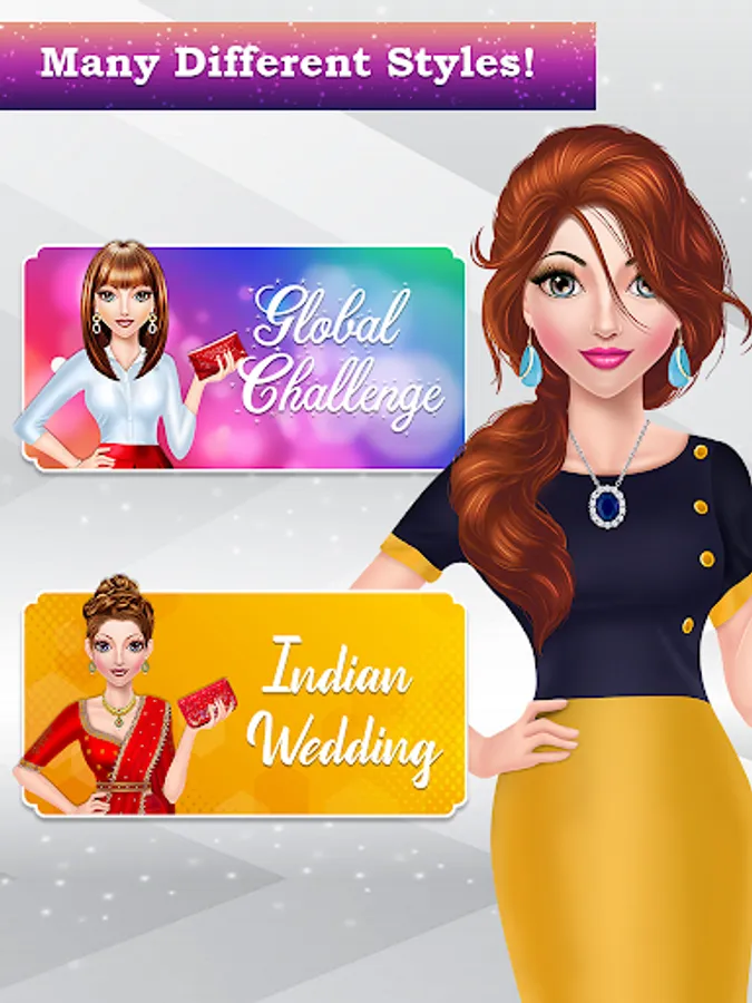 Hey girls! Welcome to world fashion adventure. The best fashion dress up games challenge games for girls. Fashion show, dress up and stylist is the perfect games for fashion designers. Let's play this fashion dress up girl game up right now. Go to fancy fashion events and your unique Stylagram. Get ready to have international fashion designing for stylish models, supermodel, superstars, model fashion, makeover, princess fashion, indian wedding fashion, makeup, brides and more. Create looks dress up to impress the judges with your fabulous fashion star look. These top fashion style challenges with your girl games gorgeous outfit to complete accessories and bridal make up your look in a fashion contest. The new hottest fashion model around the world. This is the most beautiful makeup games.