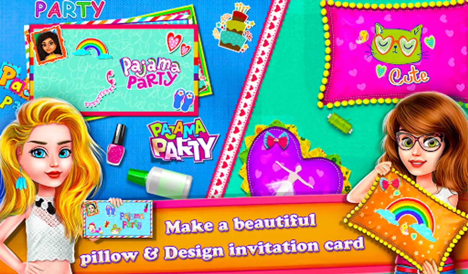 In this girls PJ night game, you will get the chance to choose one character from the four best party friends and then play her role in this night party game. First, you will need to help her in making an attractive invitation card which will be sent to her besties in this card making game. Before the PJ party, your selected girl needs so much help like in face spa game, hair wash game, cleaning the house game and in the dress up game. You need to help her with every task in this sleepover game. There will be so much fun waiting in these fun activities.