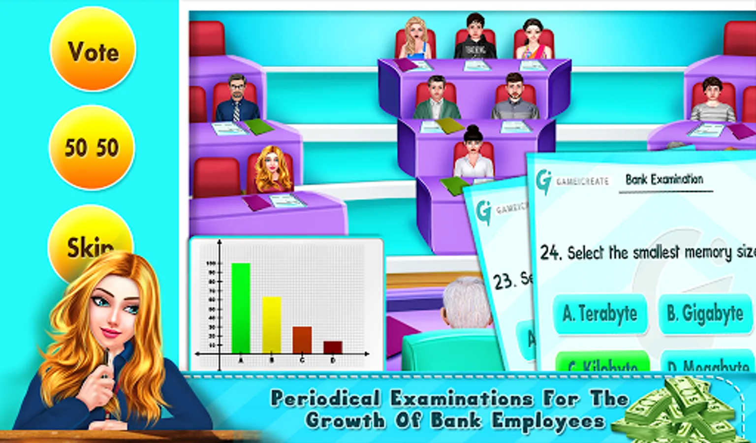 In this bank manager & cashier game, you will enjoy tons of bank education tasks.