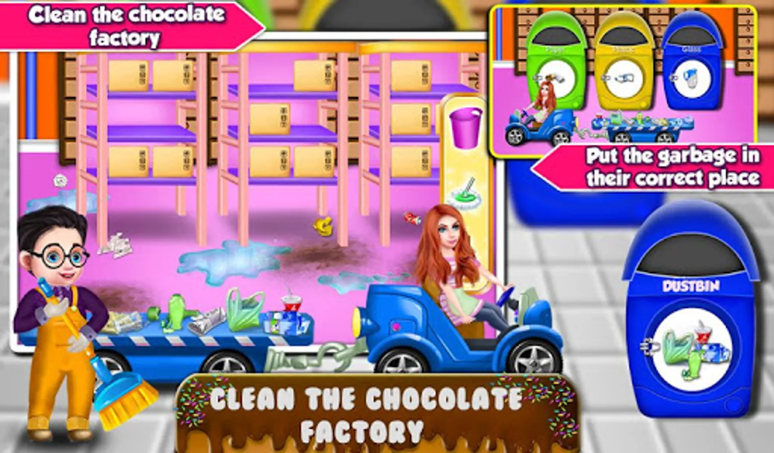 In the chocolate factory game, first, you need to make some cocoa mixture and send it to add some necessary ingredients in it. After making a complete mixture you need to fill the molds with this mixture. Now add up some yummy cream on the chocolate and also add some tasty toppings on the chocolates. Chocolate is ready so it’s packaging time. Package the chocolates and put the entire chocolate box in the godown. But first in this bakery game, you need to clean up the godown to make it hygiene. After that, load the cartons to send it to the delivery vehicle. Now it's time to deliver the chocolates to the supermarket crossing many hurdles. In the supermarket, you need to adjust the chocolates in the boxes and sell it to the customer. Here in this chocolate factory games for girls, you can also enjoy mini-game "Make Way for the Truck" will entertain you for hours.
