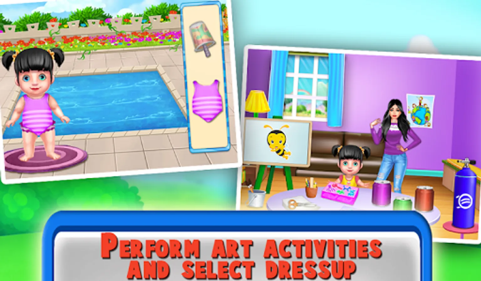 Naughty babysitter game gives you a great chance to play and learn about childcare. In this baby sitter game, you can run your own kindergarten. In baby sitting, we can add lots of fun-filled activities that you perform with a cute baby like create different art in the art room, enjoy swimming in the pool, wash the baby with some soap, blow the balloon and much more. With this baby care game, you have to learn how to make healthy food for baby, crafting, how to make a doll and much more educational activities. You can also check your makeover skills by selecting the best dress up like beautiful clothes, footwear, bag, and gloves in this day care game. Complete every activity step by step and take care baby they don't cry. Play and enjoy this Naughty Babysitter game for girls and share it with all of your friends who like to play baby care learning game.