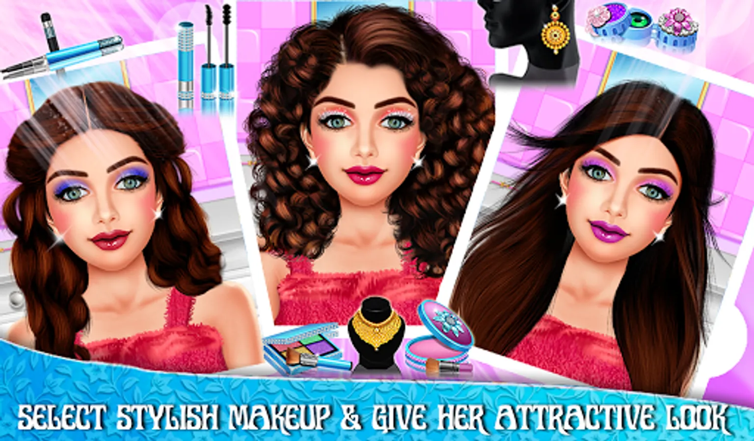 First of all, choose your favorite hair design and prepare it with proper guidance in the wedding salon game. After that choose tons of different hair decoration accessories and decorate her hair using your skills. A royal wedding is a special day for the bride so nothing can be left out. Accessories can enhance the bride's look at an Indian wedding. So here we included some of the varieties and great options for hand accessories and feet, let's select the unique once out of stunning fine accessories for hands as well as for legs. The next step is the princess makeup session and there are lots makeup accessories that you choose for her stylish looks like a beautiful hairstyle, blush, eye lenses, nice shape of eyebrows, eye shadow, lipstick and much more in wedding bride game for girls. After that choose unique designs of ornaments and decorate her hand and feet. Next, you will help her to select an attractive wedding dress up like a stunning necklace, matching earrings, beautiful wedding dress, crown, bouquet, gloves, footwear and much more in wedding dress up game. After completing all the makeover activities in wedding makeup game now it’s time for the romantic dance with her dream guy. And then decorate the wedding area by selecting cool accessories and objects. At the end enjoy the kiss with each other and have lots of fun.