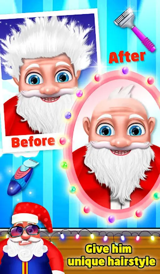 Make sure Santa Claus is ready for his Christmas delivery. Give him shave, haircut, and a complete makeover in this beard salon game.