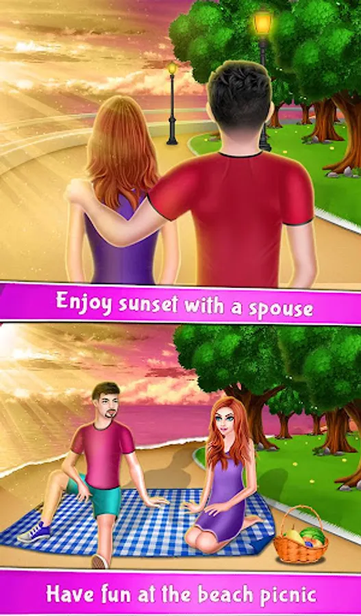 Eve and Shelina are husband and wife. Both are happy with their married life. But one-day Shelina finds Eve talking to her ex-girlfriend. She doubted Eve and they got some arguments on that. Day by day, distances are becoming longer between them in this married life game. So they decided to sort out this issue from a counselor. The counselor gives the solution to them after that Shelina tried so many things for Eve to make him happy in this husband wife game. After some days in this, Eve forgives Shelina for her doubt. After that day, Eve and Shelina both do lots of things to make another one happy in this happy marriage life game. They go to watch a movie and also went on a funfair. Enjoy lots of funfair minigame with the wife. Both are having an amazing feeling of falling in love with each other again. This journey is full of romantic moments which will give you goosebumps in this couple game and lots of entertaining tasks to make your spouse happy in this marriage game. Play this marriage life game and don't forget to share your review.