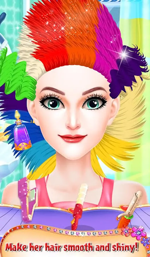 The princess is getting ready for a date with the prince of the neighboring kingdom and she quickly needs some makeover done for her hair and face. Wash her hair and use the shampoo to make it smooth and silky. Remove the pimples from her face using the pimple remover and then remove all the black marks. Cut her hair and give some beautiful hair design for her. Choose a perfect outfit for her that she has to wear for the date. Share this makeover game with all your friends and enjoy all the different salon activities in it.