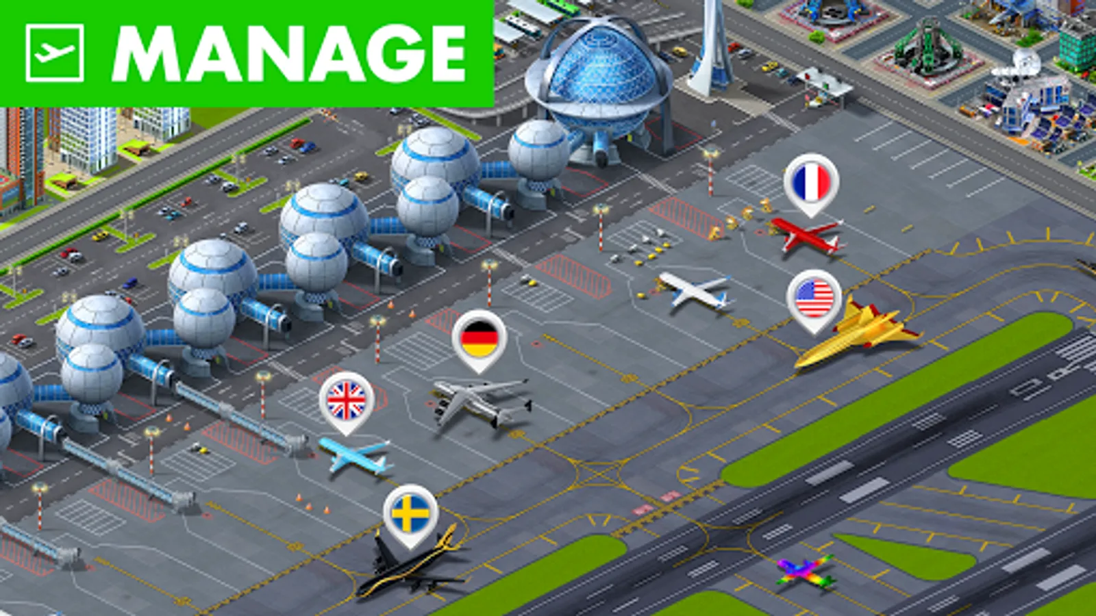 ✔ Create the airport of your dreams in this city building simulator.