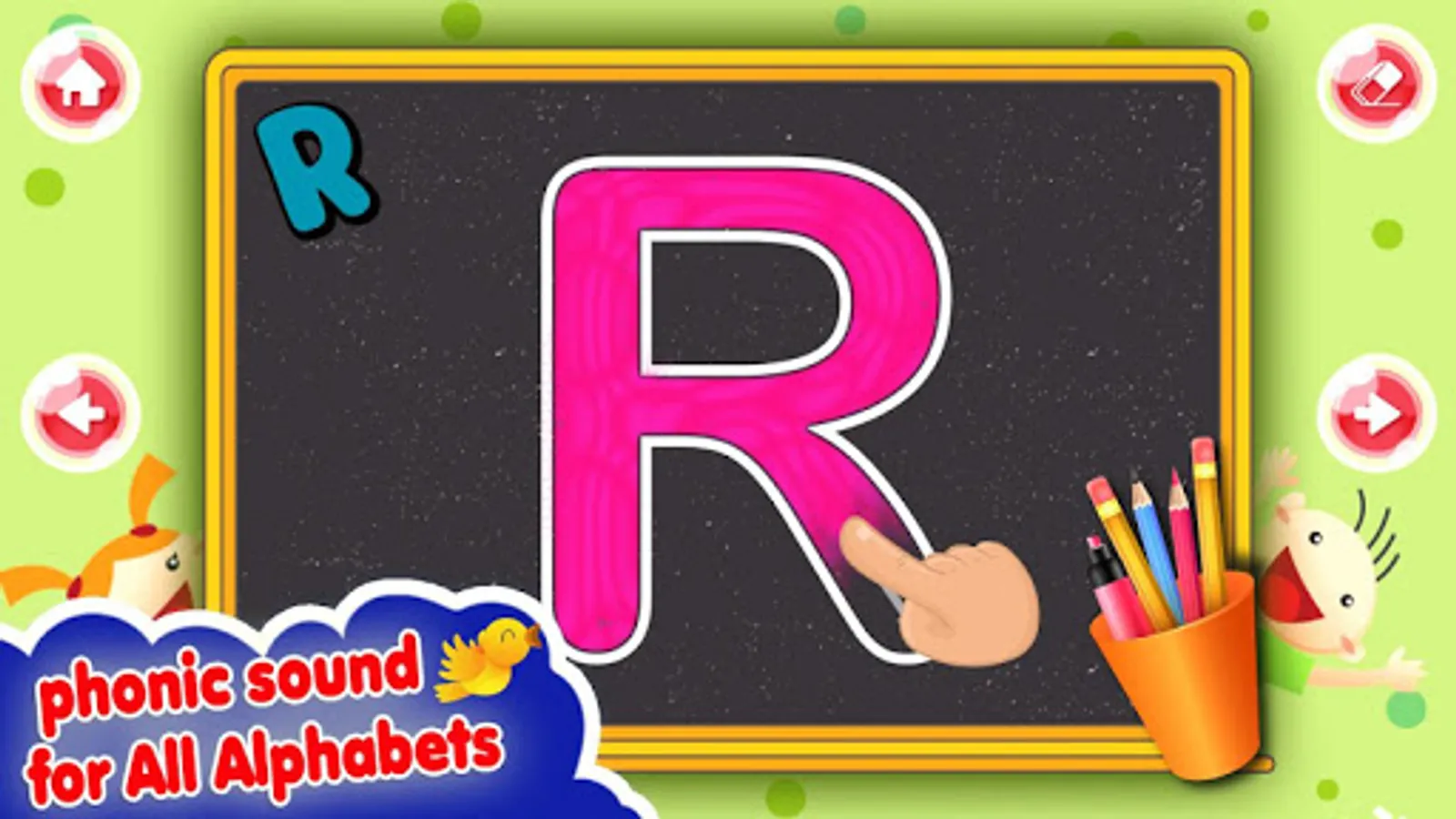 tap on the letter to listen phonics sounds , so that baby can acquire knowledge of correct English Alphabet and numbers pronunciation it will improve vocabulary skill and children learning to recognize and identify abcd and 1234 with enjoyment in this kids education game.