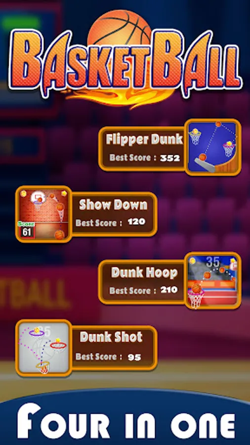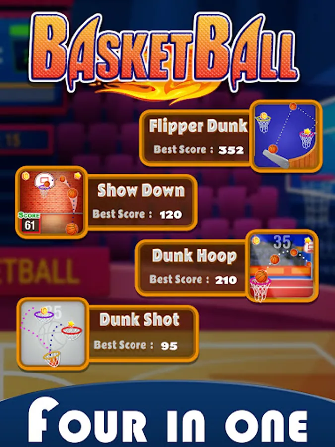 Collection of basket ball games includes: Dunk Shot, Dunk Hoop, Flipper Dunk and BasketBall Showdown. The best basketball games ever!