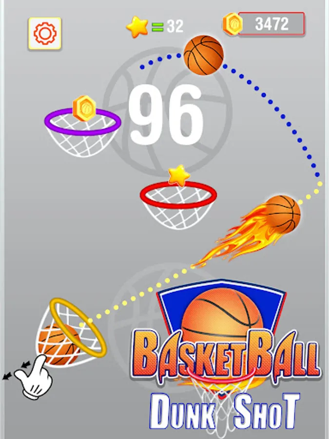 Dunk Shot: Dunk shoot smash the rim and shoot hoops. Dunk Shot is a burning hot arcade game that anybody can enjoy! How many points in a row can you get? Ready to shoot some hoops? Grab a ball and start dunking! Slam dunk the hoop by shooting streak, join the basketball competition, shoot the ball and try to get as many points as you can, and crush your high-score! Shoot the hoops, unlock new balls, become the next basketball star! The dunkz hit get on fire in this hot, epic and bouncy basketball game!