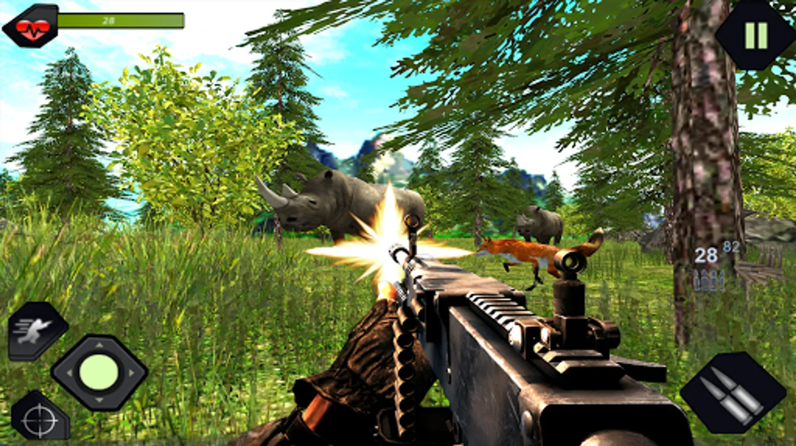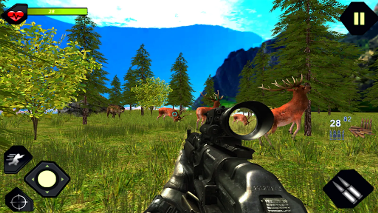 While stag, zebra and fox run away hearing firing sound. The target of sniping running wild animals is a little challenging. So use your army sniper shooting skills to kill these animals before they attack or run away.In this wild hunter you have multiple levels with varying animal according level difficulty.As level number increase more powerful animal you have to hunt.
