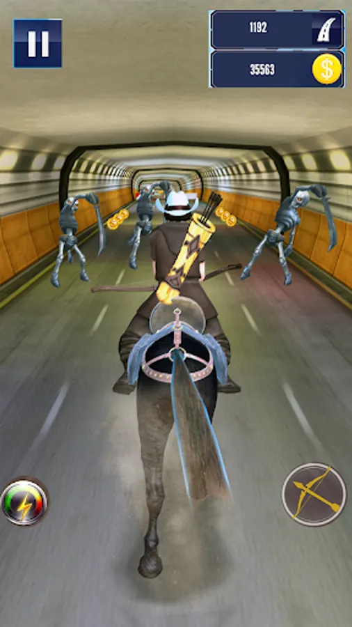 Challenging game play won’t be an easy task for you. A horse rider with his archery shooting is a scary scene in Street and cave temple escape game. The path is full of sharp razor like hurdles, skeletons, grumpy rocks and many others. Amazing boost ups, diamonds & jewels will help your survive along. Interactivity of the Street temple style subway environment, sound effect and game play is even more interesting to witness. The perfect skills of horse run simulation in arcade style horse run will help you ride your wild horse to survive and escape in cowboy archer run offline archer game.
