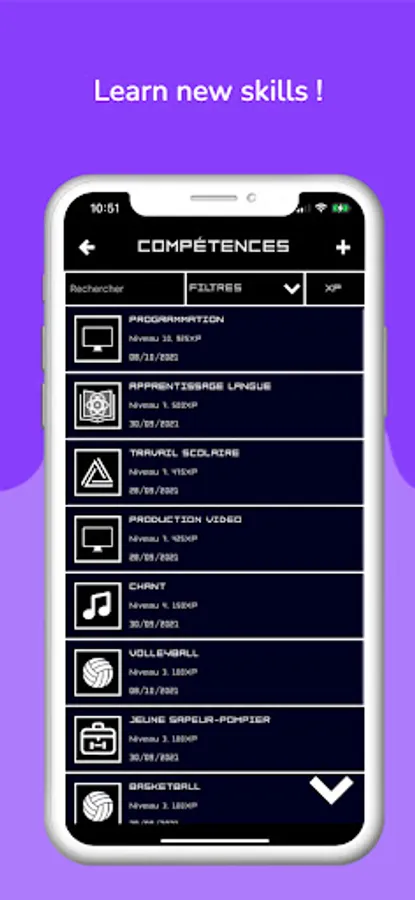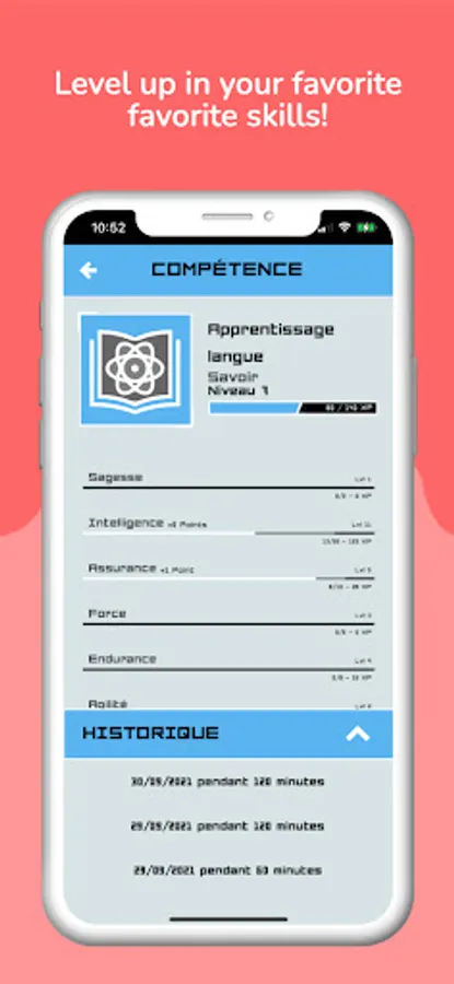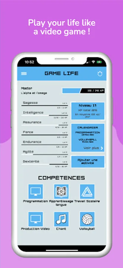 Enter your sports, arts, jobs, classes, daily life and relaxation activities to gain experience, to level up in real life, to become more motivated, better organized... In short, to become better.