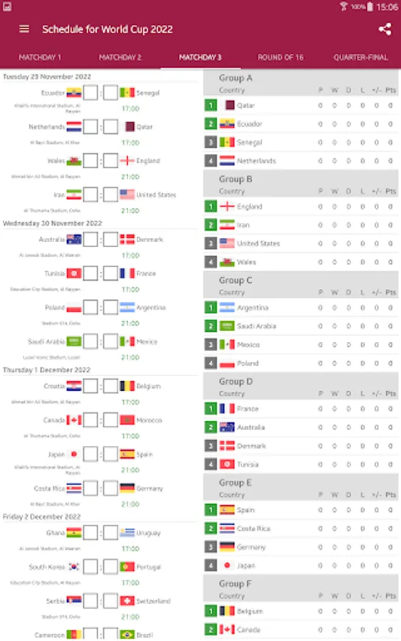 Watch for the matches and fill your own 2022 World Cup table.