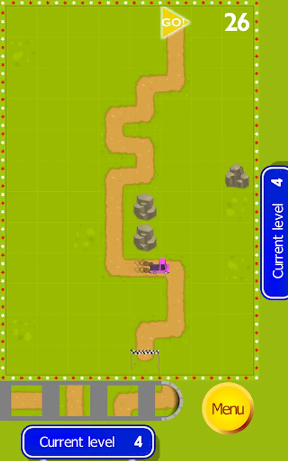 Place different tile pieces and form a track from start to finish before the time runs out. Avoid different obstacles and don't forget to collect extra time.