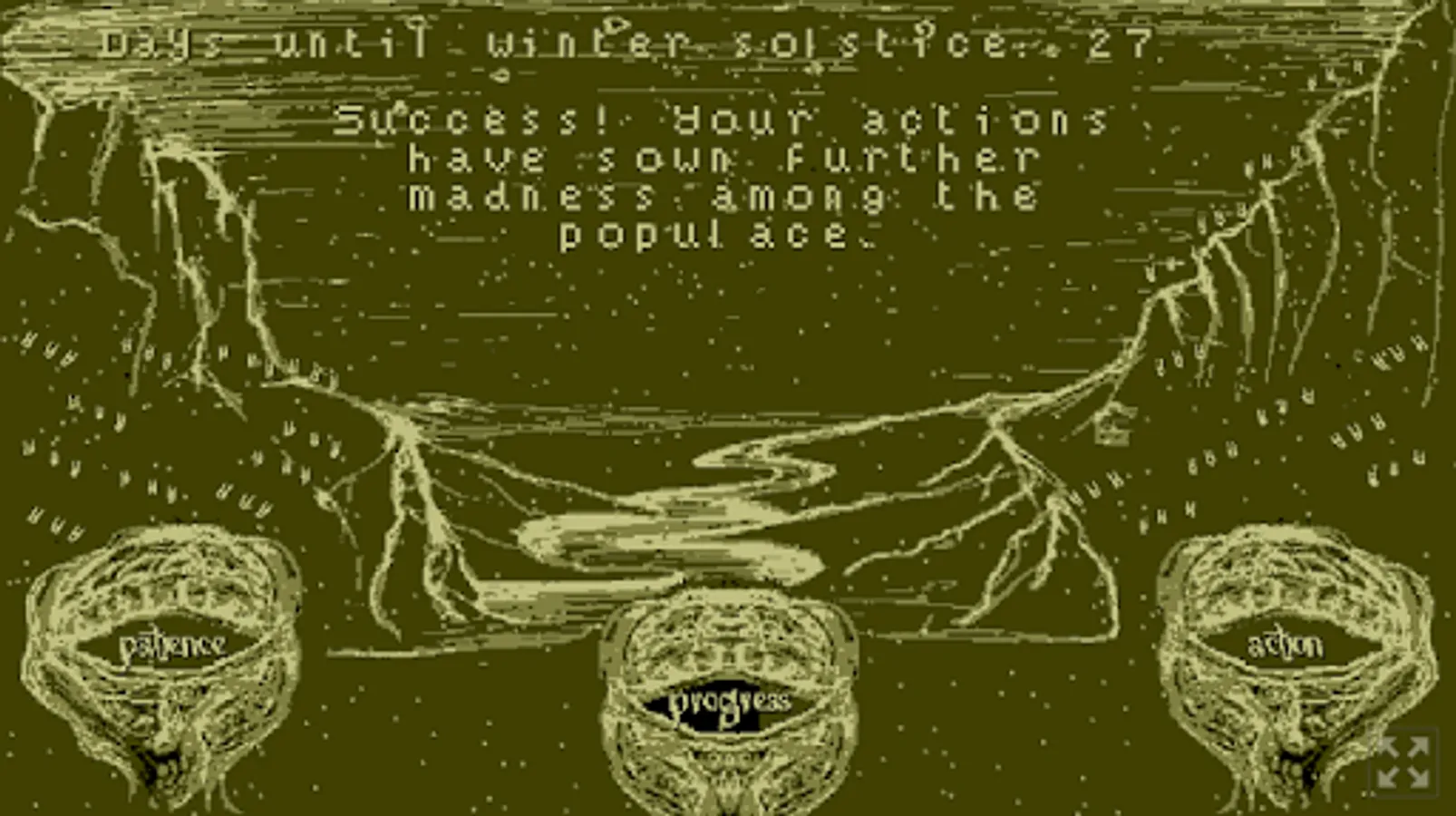 Read the newspaper headlines and guide your cult to awaken C'thulhu by influencing events on Earth before the time runs out at the end of winter solstice.