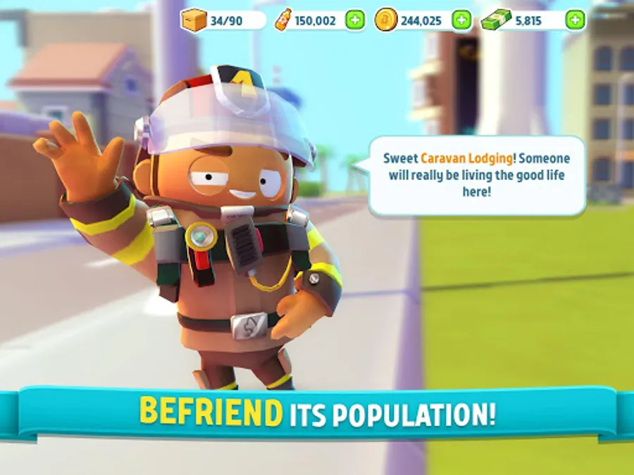 Build a water tower. Check! Build a fire station. Check! Assigning Bizzies to jobs will help you optimise your city, but you can go even further! Send them on missions and they won't come home empty-handed, or do favours for them so they invite their friends to fill your city.