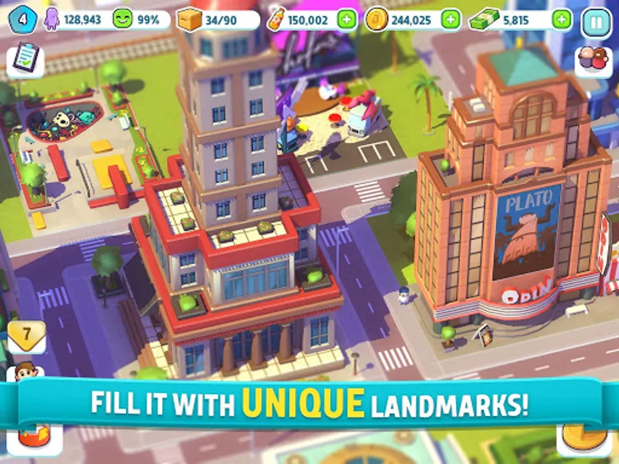 Don't forget to decorate your skyline by building famous landmarks, like the Eiffel Tower, the Tower of London and the Leaning Tower of Pisa (there's something for every tower fan) to elevate your city to the top of the tourist destinations list.