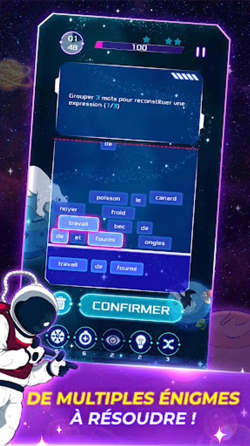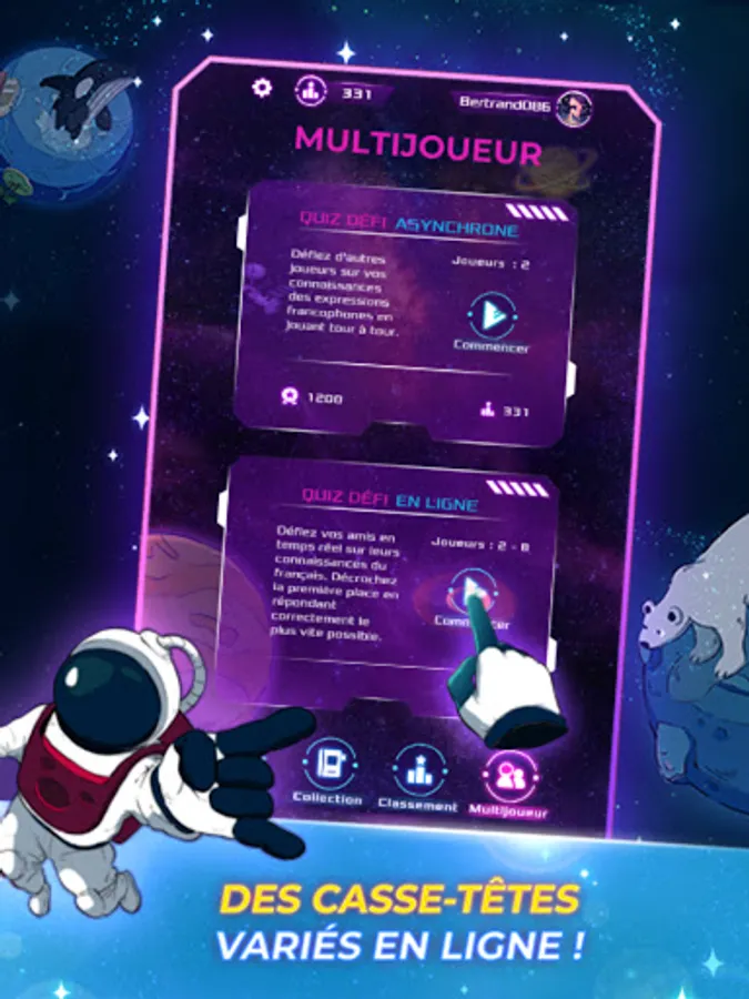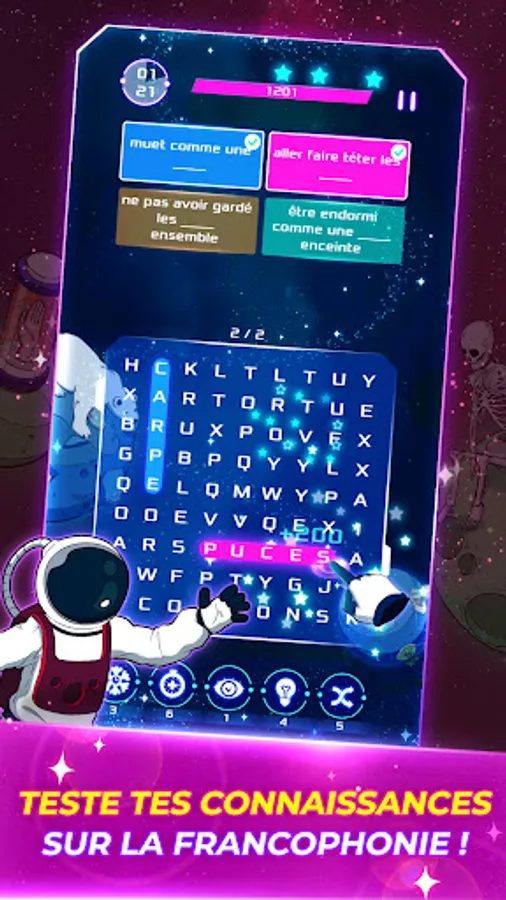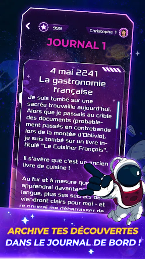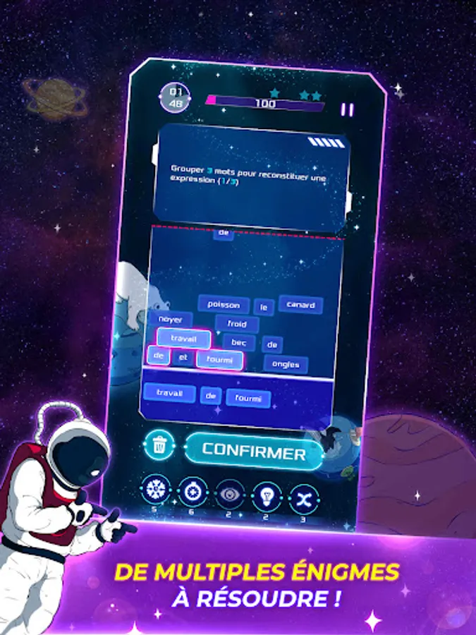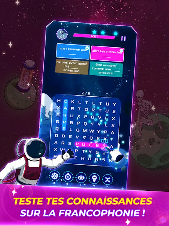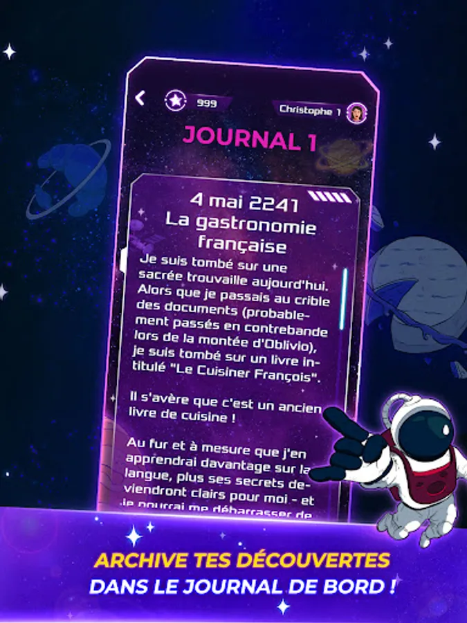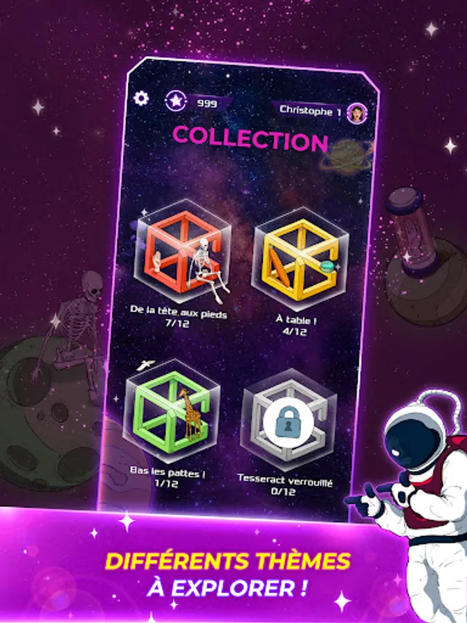 Win playful challenges in matching or trivia games, quizzes, cube games, crosswords, word searches, puzzles or brain teasers, unlock tesseracts and collect reward cards in the form of mission journal pages needed to the progression of the story and adventure of the astronaut Elocus in the galaxy.