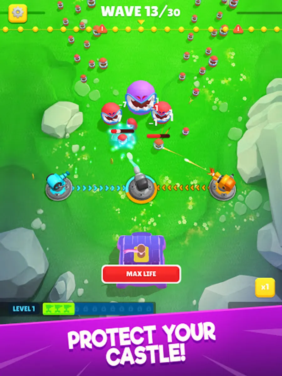 Protect your castle, build powerful synergies, unlock, merge, and upgrade your turrets. Sweep roguelite enemy waves and complete distinct worlds while insatiable alien swarms chow down on your castle.