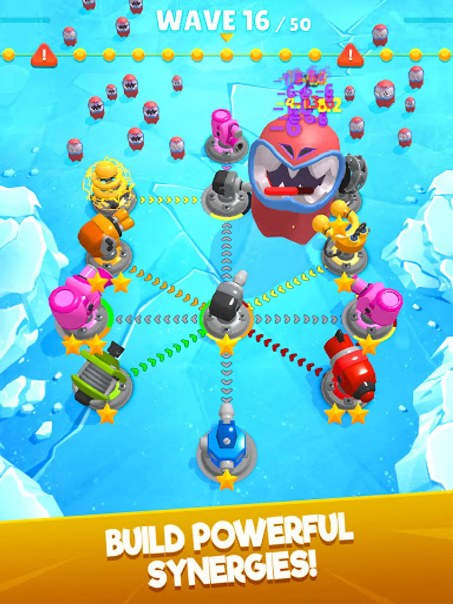 Mix & Merge Turrets in the heat of battle to boost their power and unleash invincible abilities.Discover endless synergies between towers to squash the enemy. Play Auto Defense for nonstop fun while clearing roguelite enemy waves and completing exciting worlds.
