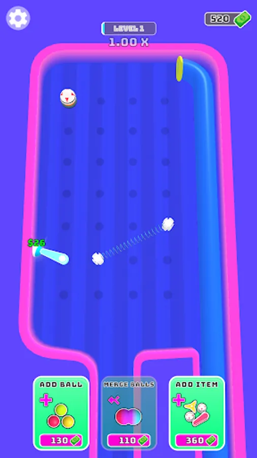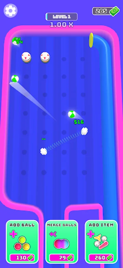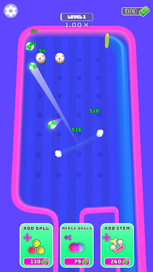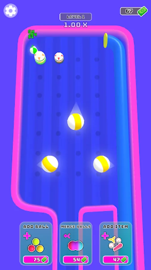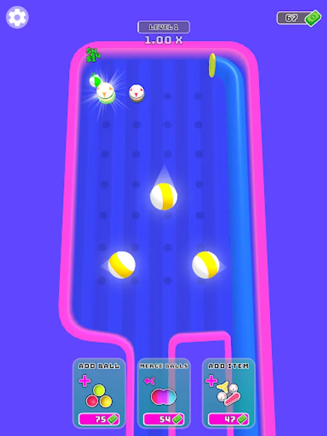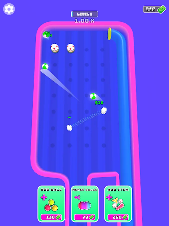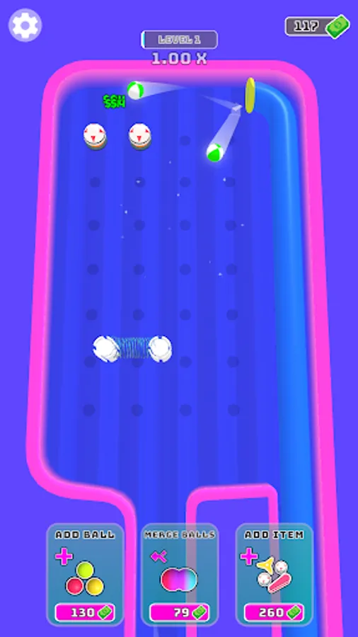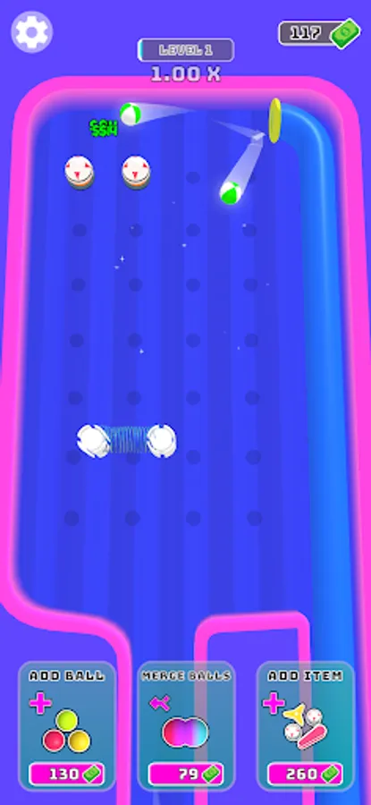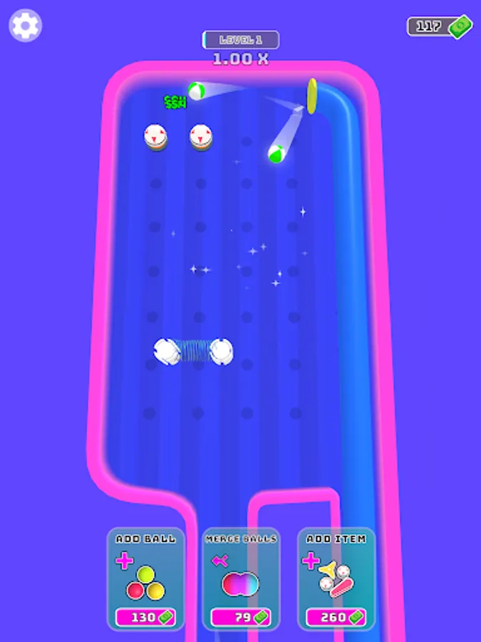 Make your own pinball board. Add balls and items. Merge balls, and items to get upgrades and earn more money.