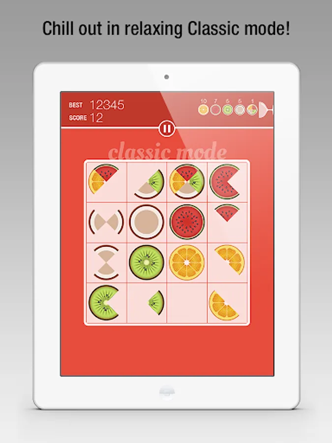 Rules are simple - all you need is to slide and rotate fruit parts on the field to make one or multifruit circles.