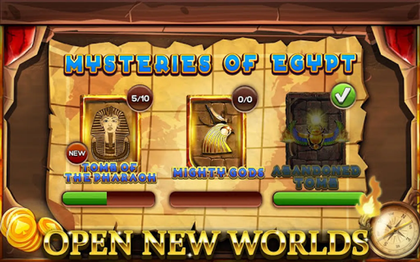 Catching BONUS GAME. Travel to TOMBS to find PRIZES. Pharaoh was buried with TREASURES. It’s not a real CASINO but don’t be scared of corpses or ghosts. SCATTER symbols will help you to get the Treasure.
