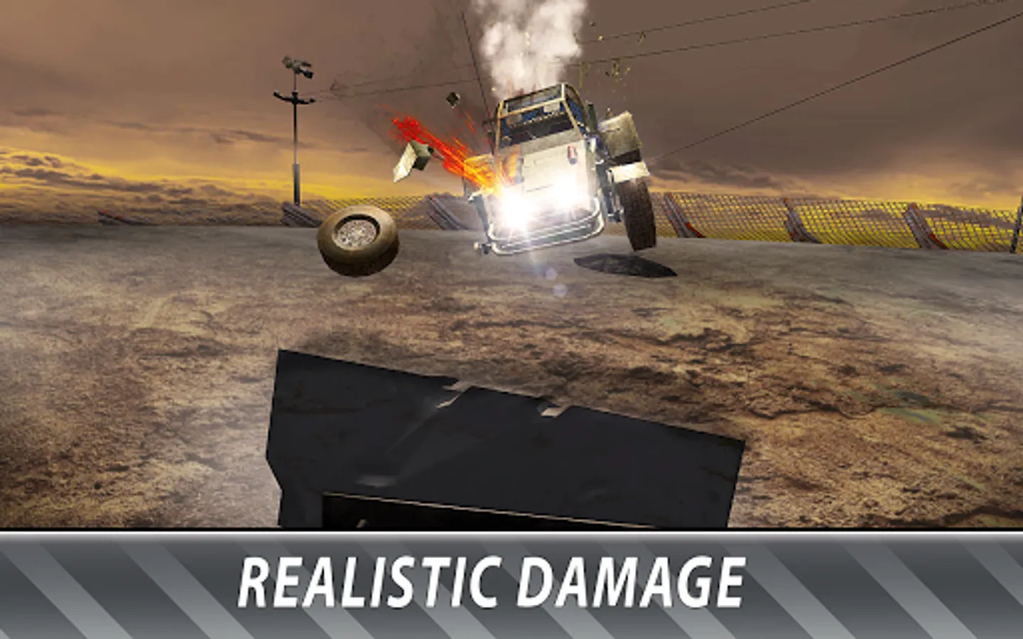 Drive cars and burn wheels not for racing competition, but for racing demolition! Drive and crash enemy cars with your wheels. In derby competition racing is about being last, not first. Arena can have only one champion! Drive cars and crash enemies in extreme crash racing - will your wheels be last on the derby arena?