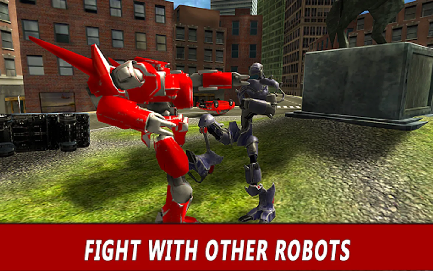 Earth seems unworthy? Break the city with iron hands! A battle robot in action is unstoppable. Use things around the city as targets or projectiles. Fight hard, so none can fight you and your armor - neither cyborg invasion, nor Earth forces. Robot might and iron armor are yours to play with in the city of Flying Robot Simulator, a robot games paragon.