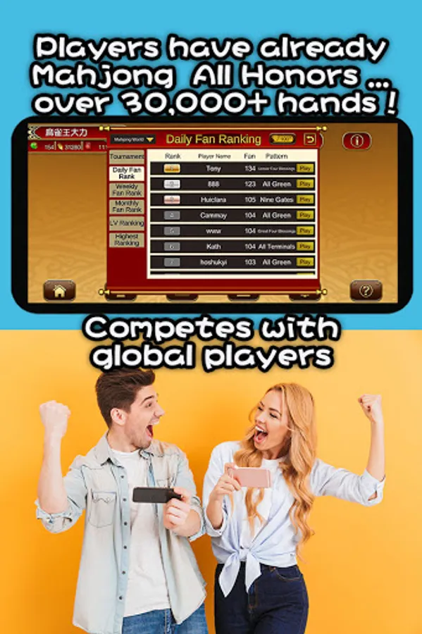 @ Compete with global players for different rankings, match rankings, daily maximum scores…